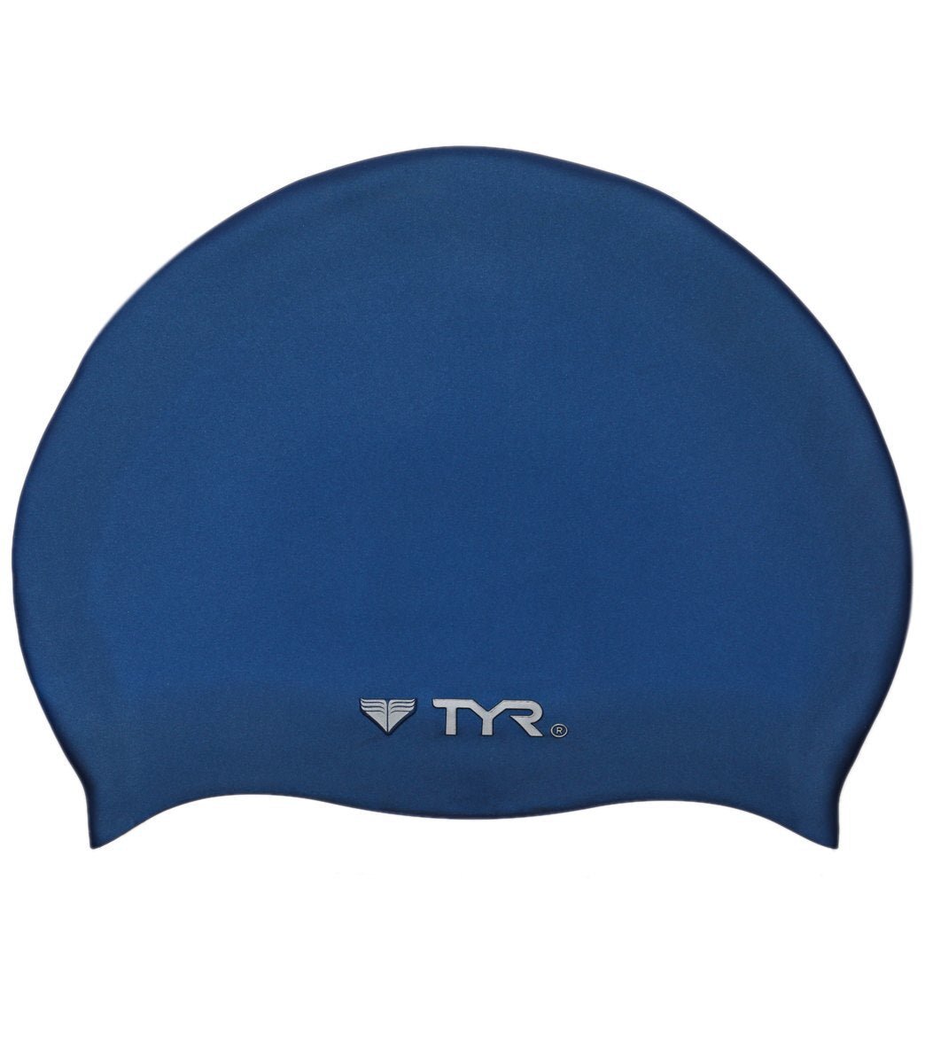 TYR Navy Wrinkle-Free Silicone Swim Cap